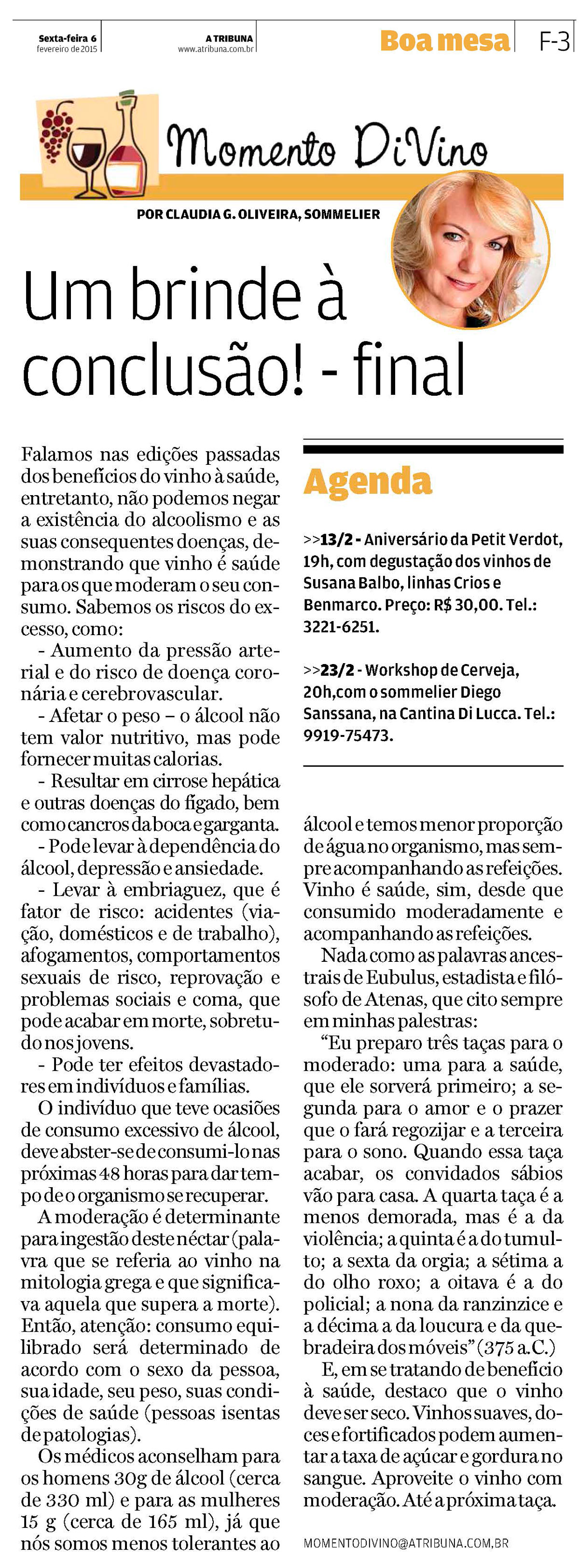 Momento DiVino "Vinho é saúde? - Parte III (final)" 06/02/15 - A Tribuna Jornal - Santos/SP