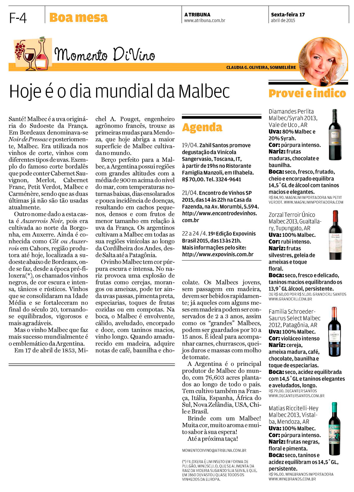 21/04 - Encontro de Vinhos SP 2015, das 14h às 22hh Casa da Fazenda, Av. Morumbi,5594. info http://www.encontrodevinhos.com.br