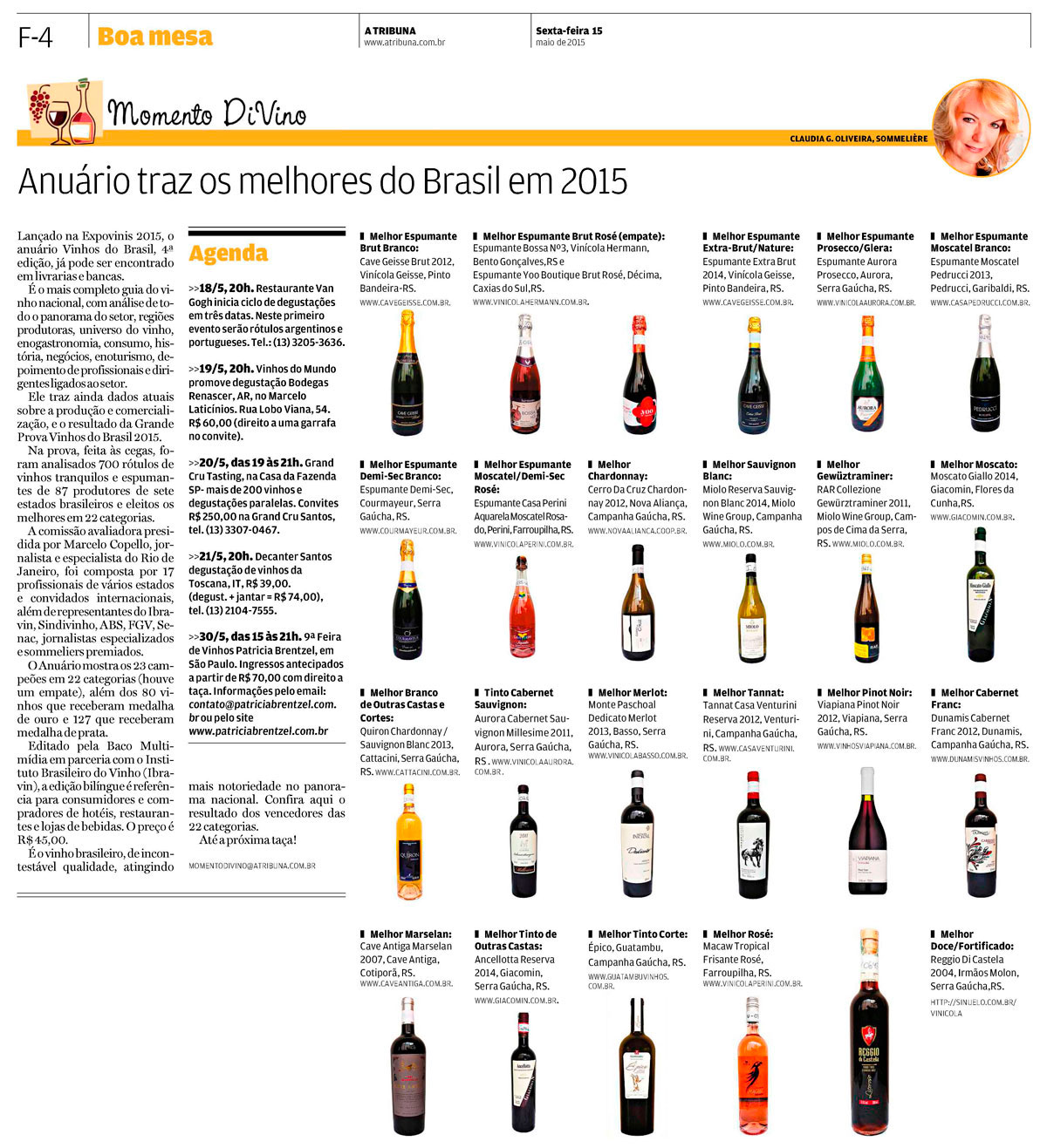 Lançado na Expovinis 2015, o anuário Vinhos do Brasil, 4ª edição, já pode ser encontrado nas livrarias e bancas.