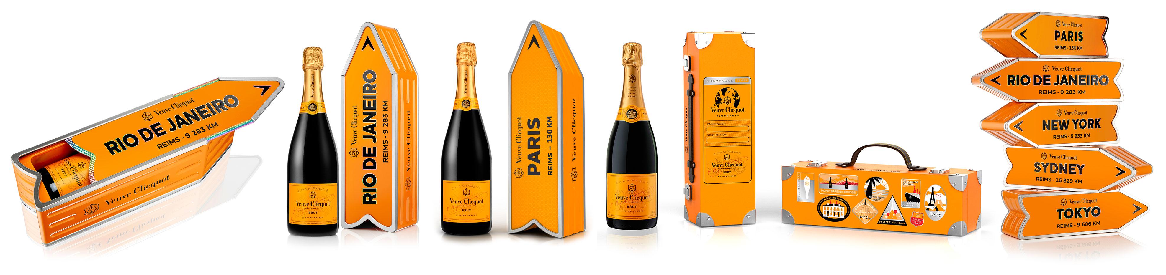 A embalagem denominada Clicquot Arrow tem o formato de seta e aponta um caminho. Apresenta uma seleção de 29 destinos. Lugares charmosos do globo como Rio de Janeiro, Ibiza, Berlim, St. Tropez, Paris, Milão, Nova York, Miami, Las Vegas, Mykonos, Tóquio, Sydney, Havaí, Istambul, Montreal, Cape Town e outros fazem parte. Muito interessante!