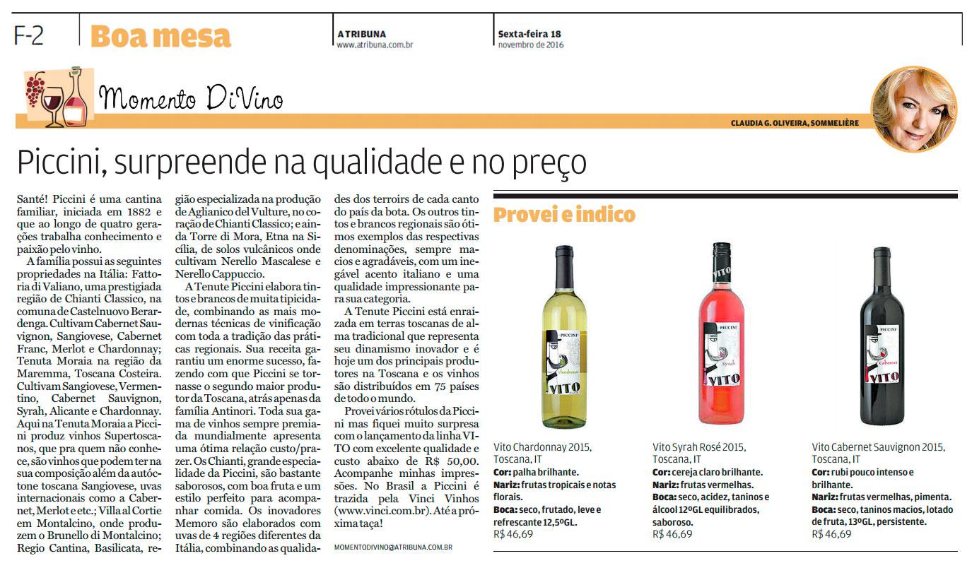 Momento DiVino "Piccini, surpreende na qualidade e no preço" 18/11/16 - A Tribuna Jornal - Santos