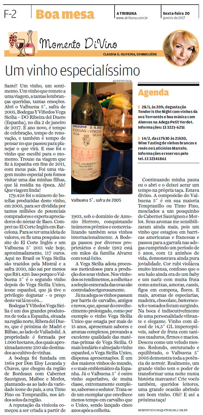 Momento DiVino "Valbuena um vinho especialíssimo" 20/01/17 - A Tribuna Jornal - Santos