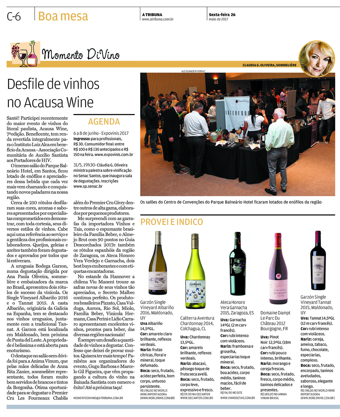 31/05 19h30 Cláudia G. Oliveira ou esta colunista, ministra palestra sobre vinificação no Circuito de Bebidas do SENAC Santos, que inaugura sala de degustações. Inscrições www.sp.senac.br/santos