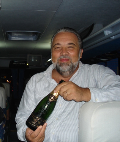 Fomos servidos "in persona" por Ângelo Salton Neto, com seu espumante Salton Evidence, no ônibus que nos conduzia ao distrito de Tuiuty, próximo a Bento Gonçalves, onde está a sede da vinícola, para desfrutarmos da apresentação de todo o complexo Salton.