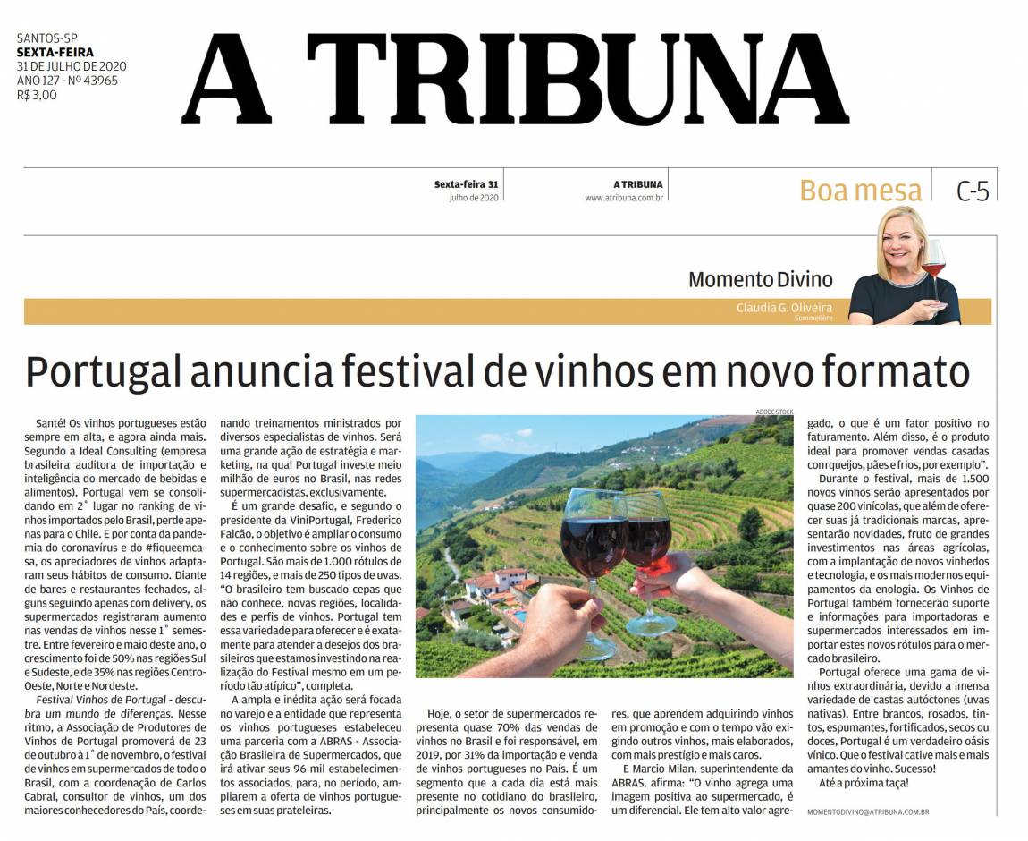 Nesse ritmo, a Associação de Produtores de Vinhos de Portugal promoverá de 23 de outubro à 1° de novembro, o festival de vinhos em supermercados de todo o Brasil, com a coordenação de Carlos Cabral, consultor de vinhos, um dos maiores conhecedores do País, coordenando treinamentos ministrados por diversos especialistas de vinhos. Será uma grande ação de estratégia e marketing, na qual Portugal investe meio milhão de euros no Brasil, nas redes supermercadistas, exclusivamente.