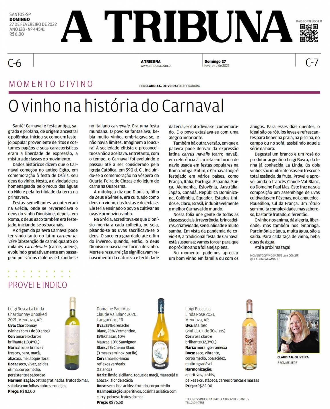 Em vista da pandemia de covid-19, a tradicional festa de carnaval está suspensa, vamos torcer para que no próximo ano a folia seja plena. No momento podemos apreciar um bom vinho em família ou com os amigos. Para esses dias quentes o ideal são os rótulos leves e refrescantes para beber na praia, na piscina, no campo ou no sofá assistindo aquela série da hora.