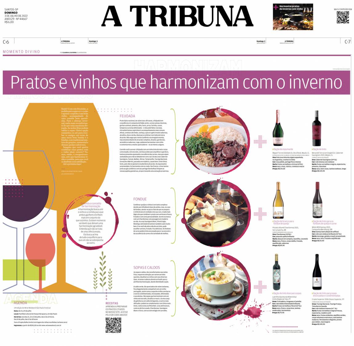 Santé! Com este friozinho, a pedida para aquecero corpo e apurar o espírito é um bom vinho, acompanhado de uma comida bem quentinha. Para o almoço invernal, nada mais reconfortante do que uma suculenta feijoada. As noites frias pedem caldos e sopas. Outra opção romântica ou até para receber os amigos em torno de uma mesa bem bonita é o fondue, com tradicional mistura de gruyère, emmental e demais queijos saborosos.