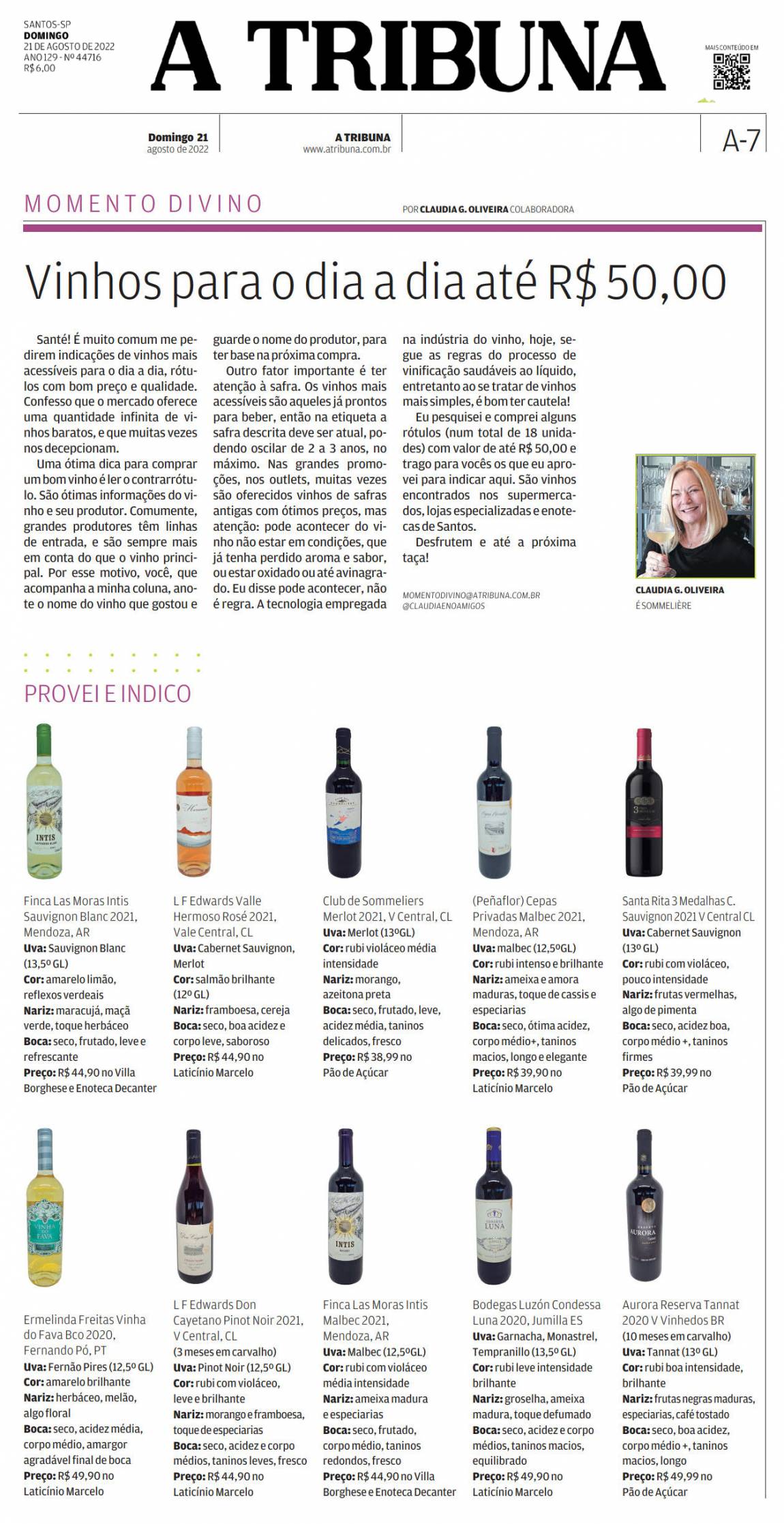 Eu pesquisei e comprei alguns rótulos (num total de 18 unidades) com valor de até R$ 50,00 e trago para vocês os que eu aprovei para indicar aqui. São vinhos encontrados nos supermercados, lojas especializadas e enotecas de Santos.