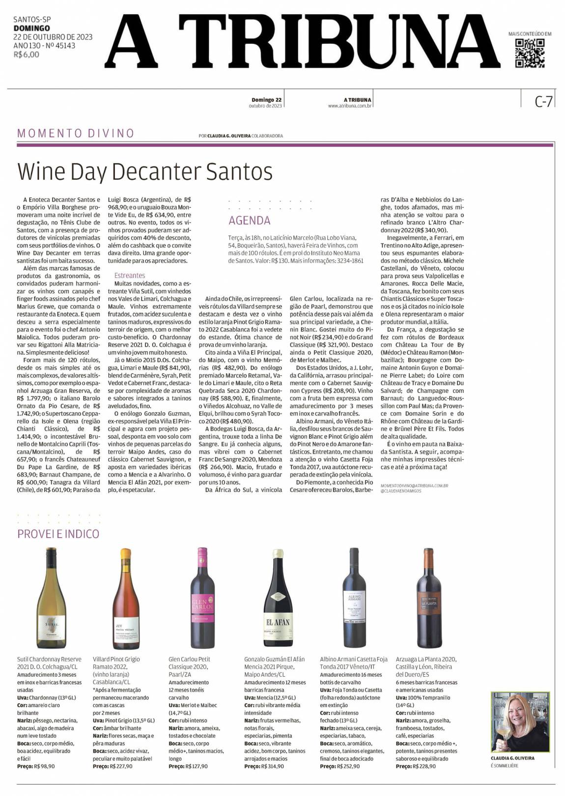Agradeço o convite dos proprietários da Enoteca Decanter e parabenizo pela realização do evento impecável. É o vinho em pauta na nossa Santos e baixada santista.