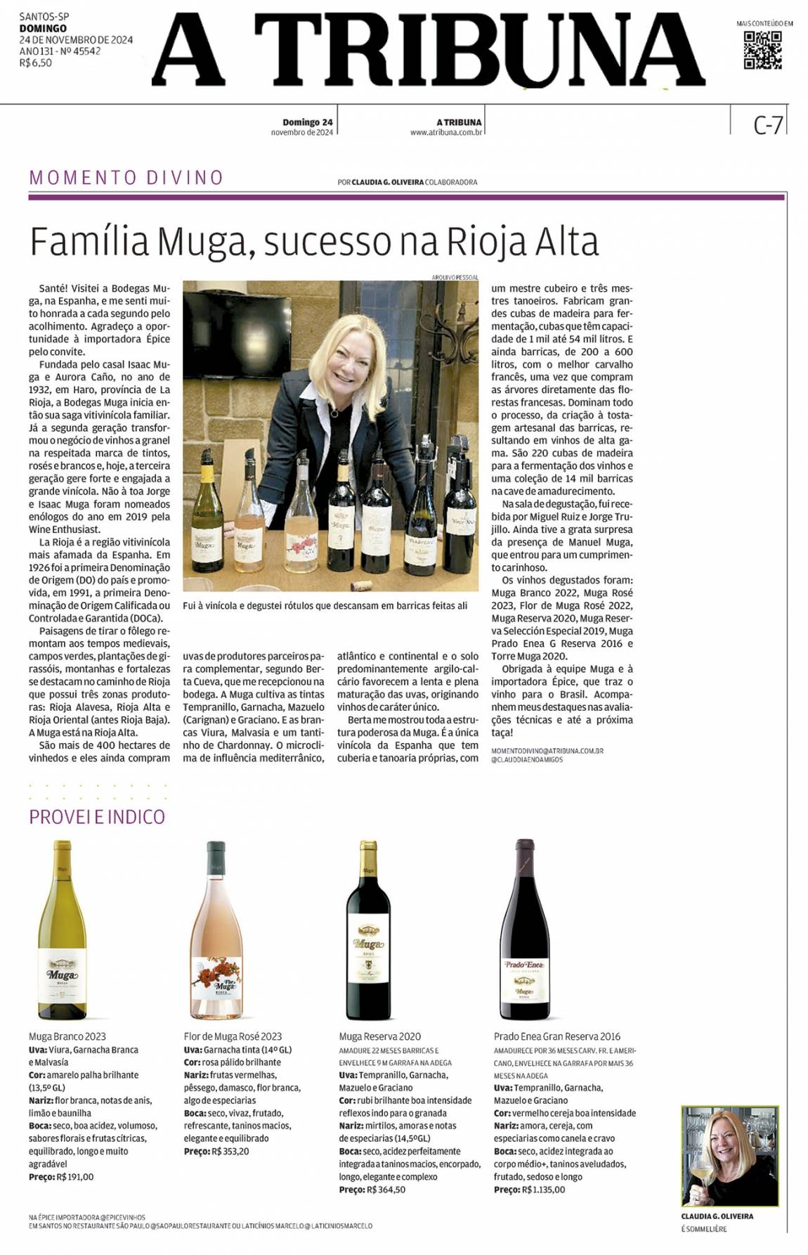Obrigada a equipe Muga e a importadora Épice, que traz o vinho para o Brasil. Acompanhem meus destaques nas avaliações técnicas e até a próxima taça!