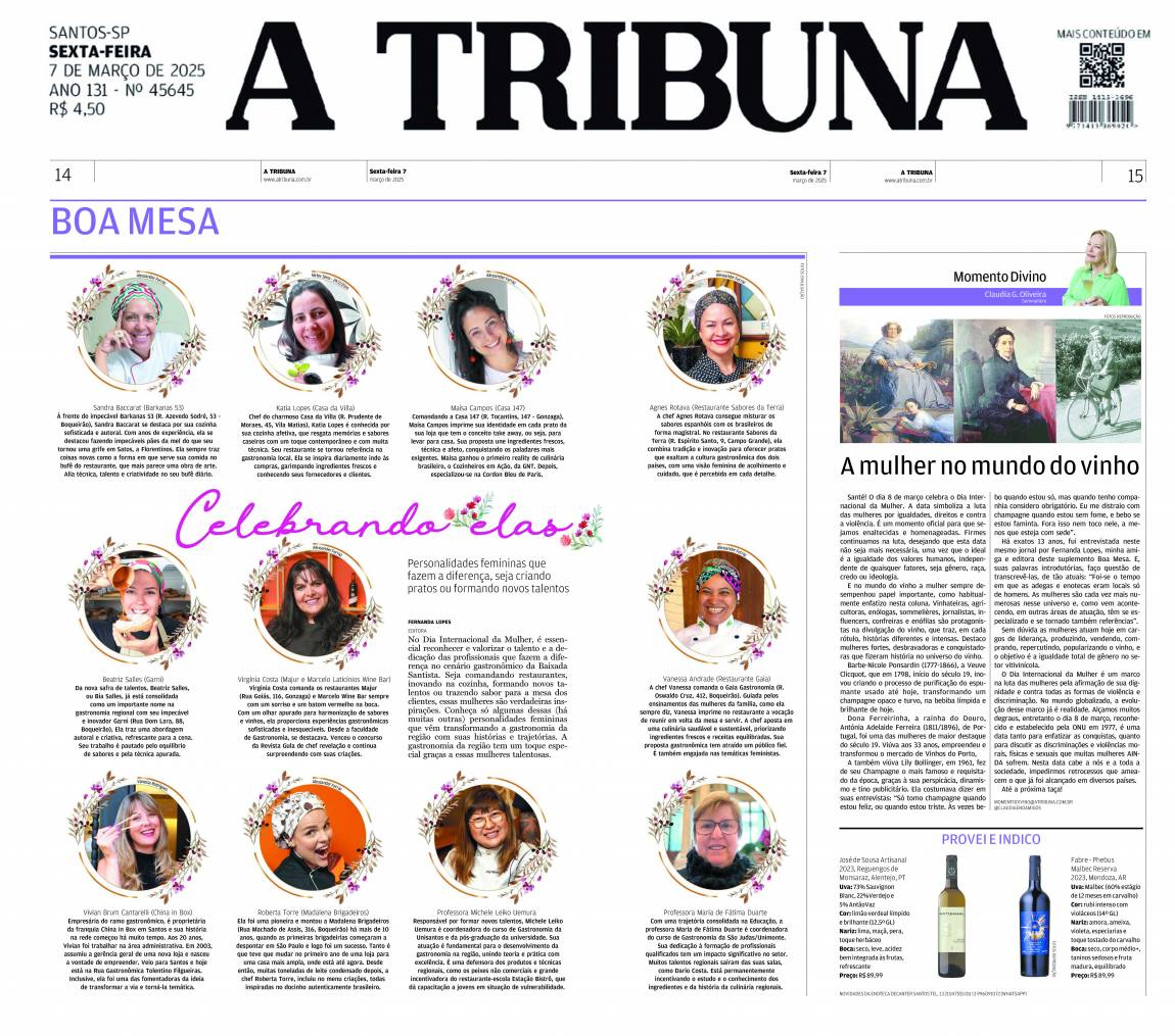 Há exatos 13 anos, fui entrevistada neste mesmo jornal por Fernanda Lopes, minha amiga e editora deste suplemento Boa Mesa. E faço questão de transcrever suas palavras introdutórias, de tão atuais: “Foi-se o tempo em que as adegas e enotecas eram locais só de homens. As mulheres são cada vez mais numerosas nesse universo e, como vem acontecendo, em outras áreas de atuação, têm se especializado e se tornado também referências”.