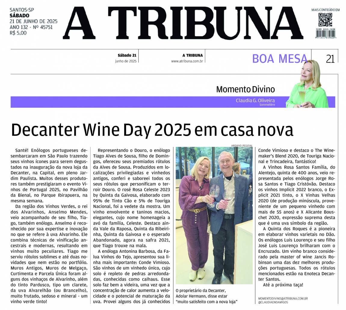 Santé! Enólogos portugueses desembarcaram em São Paulo, trazendo seus vinhos ícones, para serem degustados na inauguração da nova loja da Decanter, na capital, em pleno Jardim Paulista. Ressalto, muitos produtores vieram, inclusive, para o evento Vinhos de Portugal, na Bienal do Ibirapuera, na mesma semana.