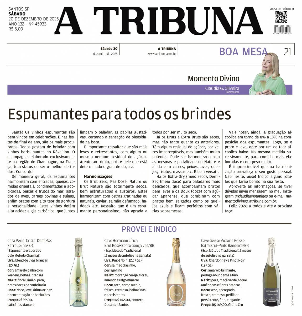 Santé! Os vinhos espumantes (sparklings wines) são bem-vindos às festas. E nas festas de final de ano, são os mais procurados. Todos gostam de brindar com vinhos borbulhantes no Reveillon. O Champagne, elaborado exclusivamente na região de Champagne, na França, tem status de ser o melhor de todos. Concordo
