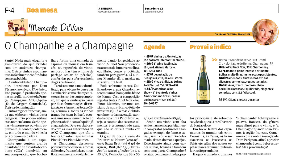E aqui vai uma dica: dizemos "o champanhe" (champagne é palavra francesa do gênero masculino) para o vinho, e, "a Champagne" quando nos referimos à região francesa.