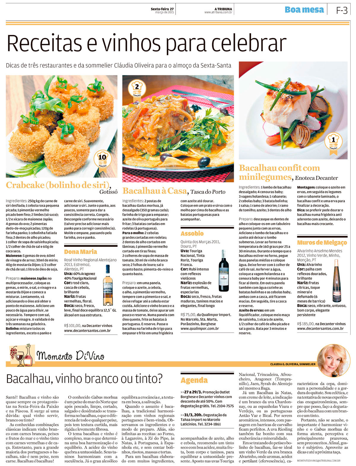 Sou eclética, e na tentativa de novas experiências enogastronômicas, sempre que posso, faço a degustação do bacalhau, qualquer que seja a receita, com um branco e um tinto.