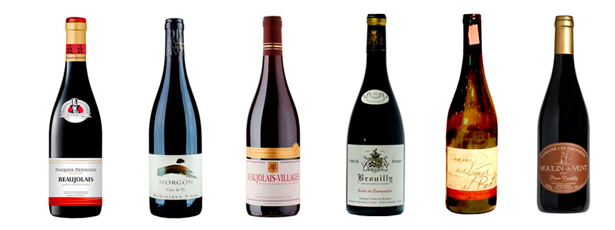 Os vinhos de Beaujolais são produzidos 98% com a uva Gamay, que proporciona tintos frutados, delicados, aromáticos, redondos e com taninos macios, ideais para consumo em países de clima tropical. Há também uma minoria de 2% de vinhedos da uva Chardonnay.