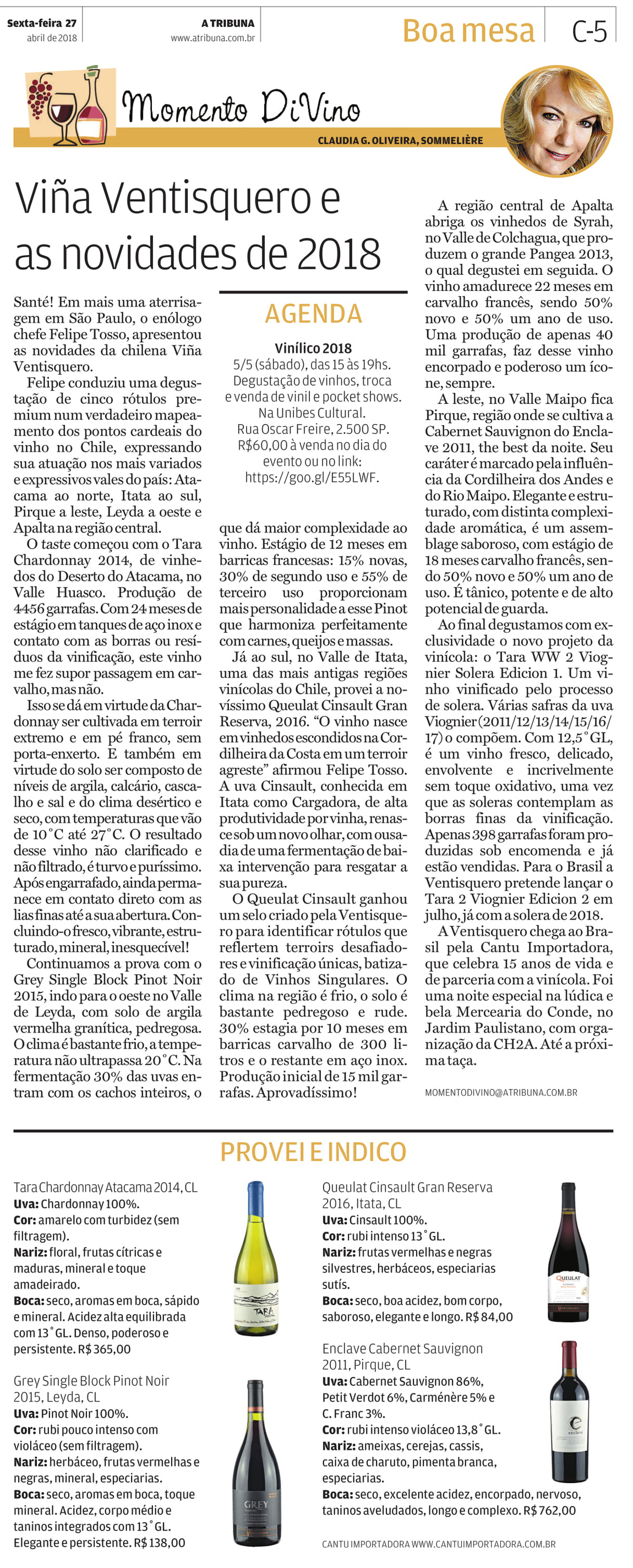 Santé! Em mais uma aterrisagem em São Paulo, o enólogo chefe Felipe Tosso, apresentou as novidades da chilena Viña Ventisquero.