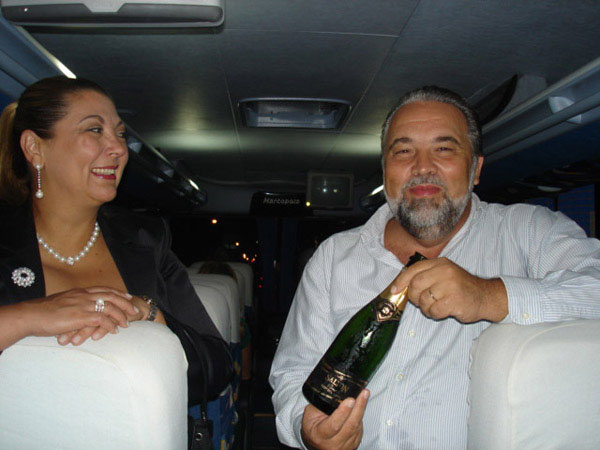 Fomos servidos "in persona" por Ângelo Salton Neto, com seu espumante Salton Evidence, no ônibus que nos conduzia ao distrito de Tuiuty, próximo a Bento Gonçalves, onde está a sede da vinícola, para desfrutarmos da apresentação de todo o complexo Salton.
