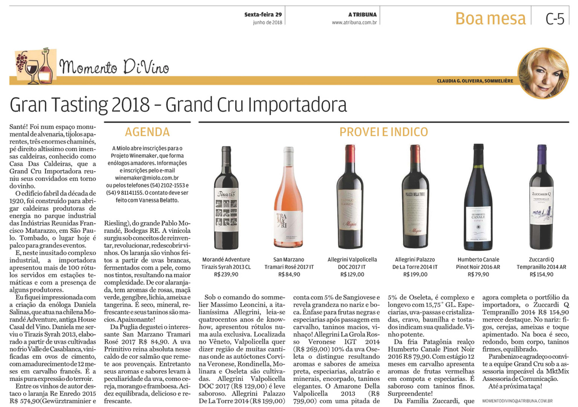Parabenizo e agradeço o convite a equipe Grand Cru sob a assessoria impecável da MktMix Assessoria de Comunicação.