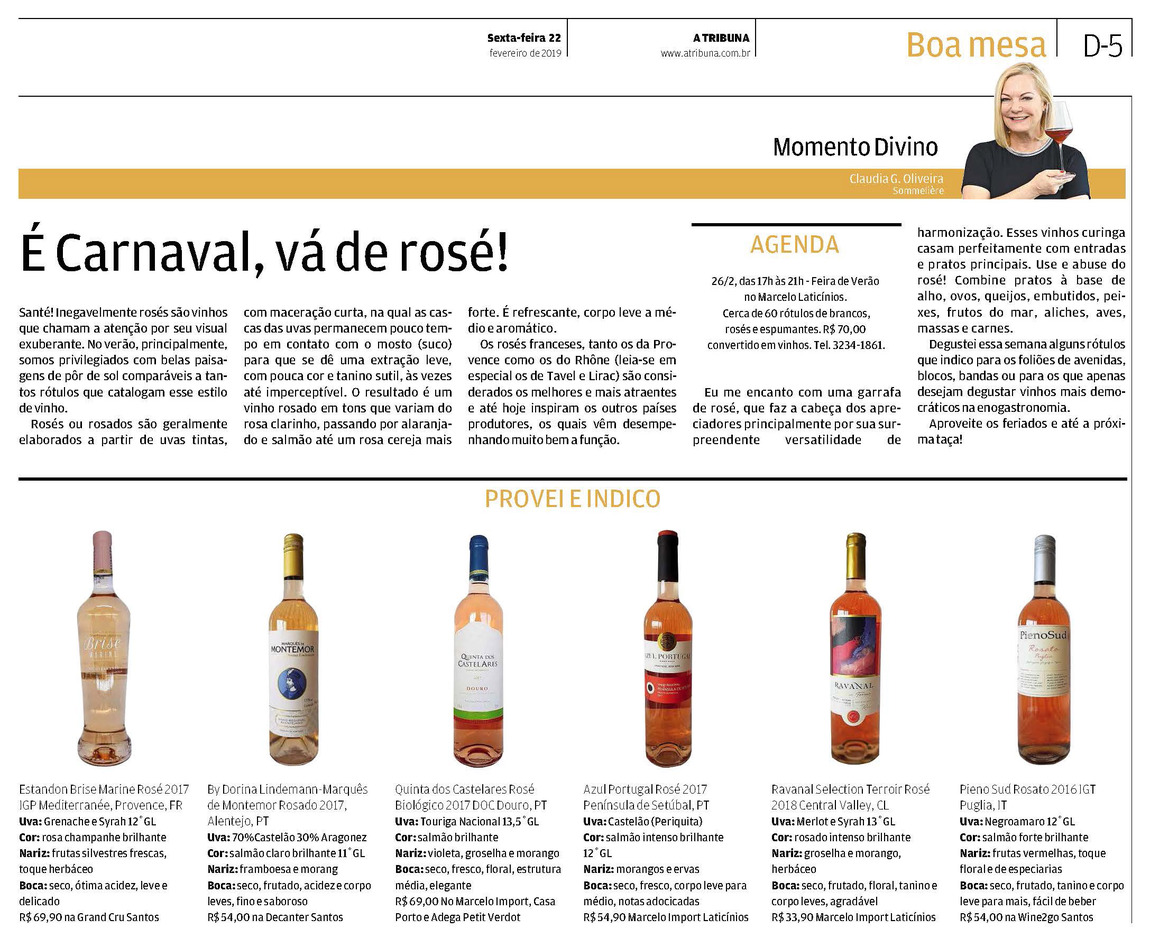 Degustei essa semana alguns rótulos que indico para os foliões de avenidas, blocos, bandas ou para os que apenas desejam degustar vinhos mais democráticos na enogastronomia.