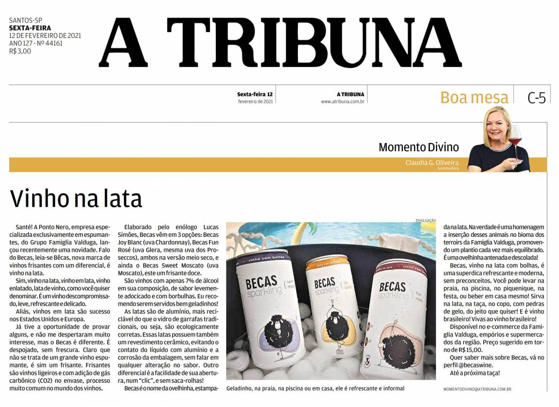 Santé! A Ponto Nero, empresa especializada exclusivamente em espumantes, do Grupo Famiglia Valduga, lançou recentemente uma novidade. Falo do Becas, leia-se "Bêcas”, nova marca de vinhos frisantes com um diferencial, é vinho na lata!
