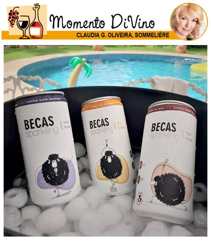 Becas, vinho na lata com bolhas, é uma super dica refrescante e moderna, sem preconceitos. Você pode levar na praia, na piscina, no piquenique, na festa, ou beber em casa mesmo! Sirva na lata, na taça, no copo, com pedras de gelo, do jeito que quiser! E é vinho brasileiro! Vivas ao vinho brasileiro!