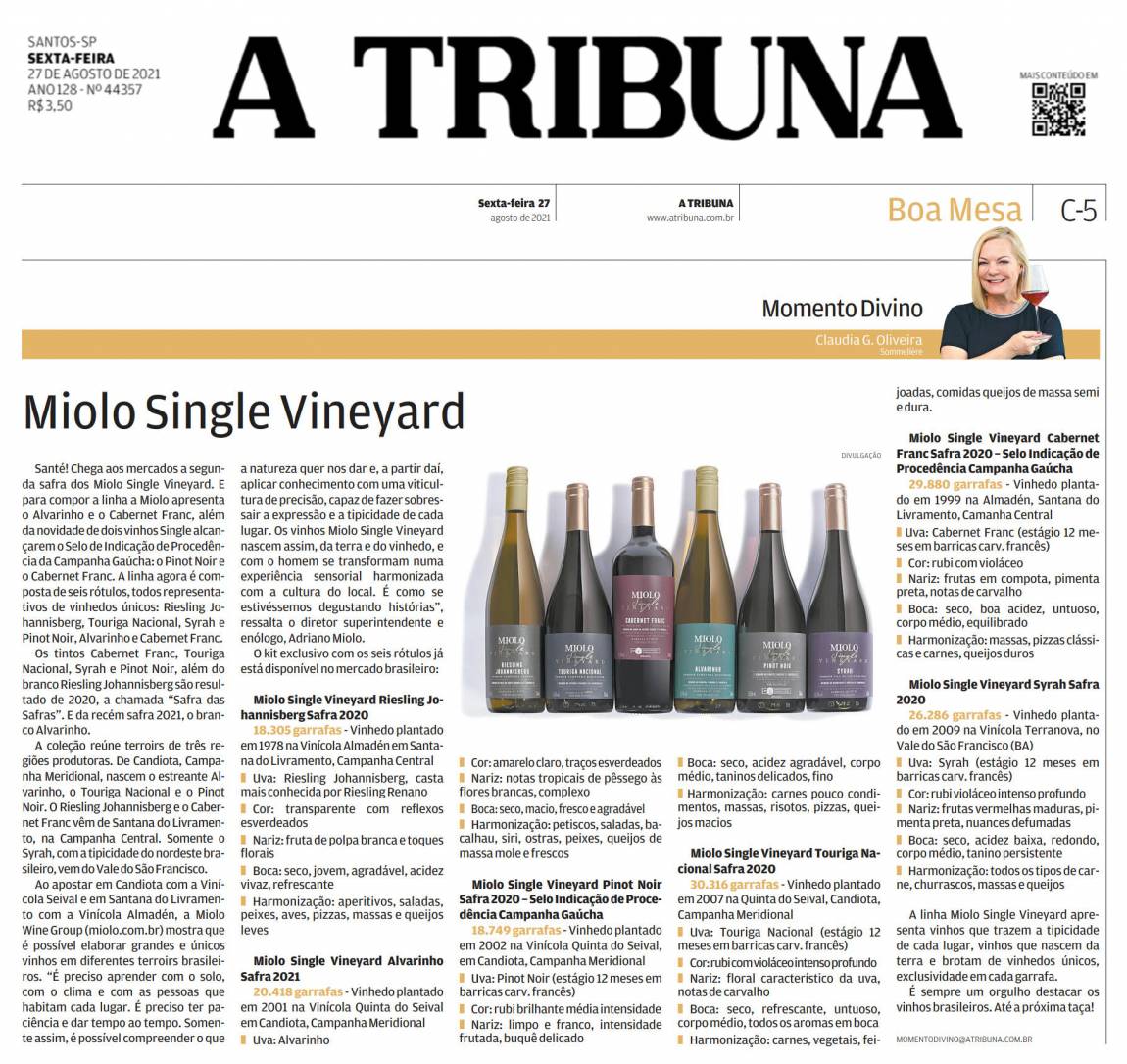 Santé! Chega aos mercados a segunda safra dos Miolo Single Vineyard. E para compor a linha a Miolo apresenta o Alvarinho e o Cabernet Franc, além da novidade de dois vinhos Single alcançarem o Selo de Indicação de Procedência da Campanha Gaúcha: o Pinot Noir e o Cabernet Franc. A linha agora é composta de seis rótulos, todos representativos de vinhedos únicos: Riesling Johannisberg, Touriga Nacional, Syrah e Pinot Noir, Alvarinho e Cabernet Franc.