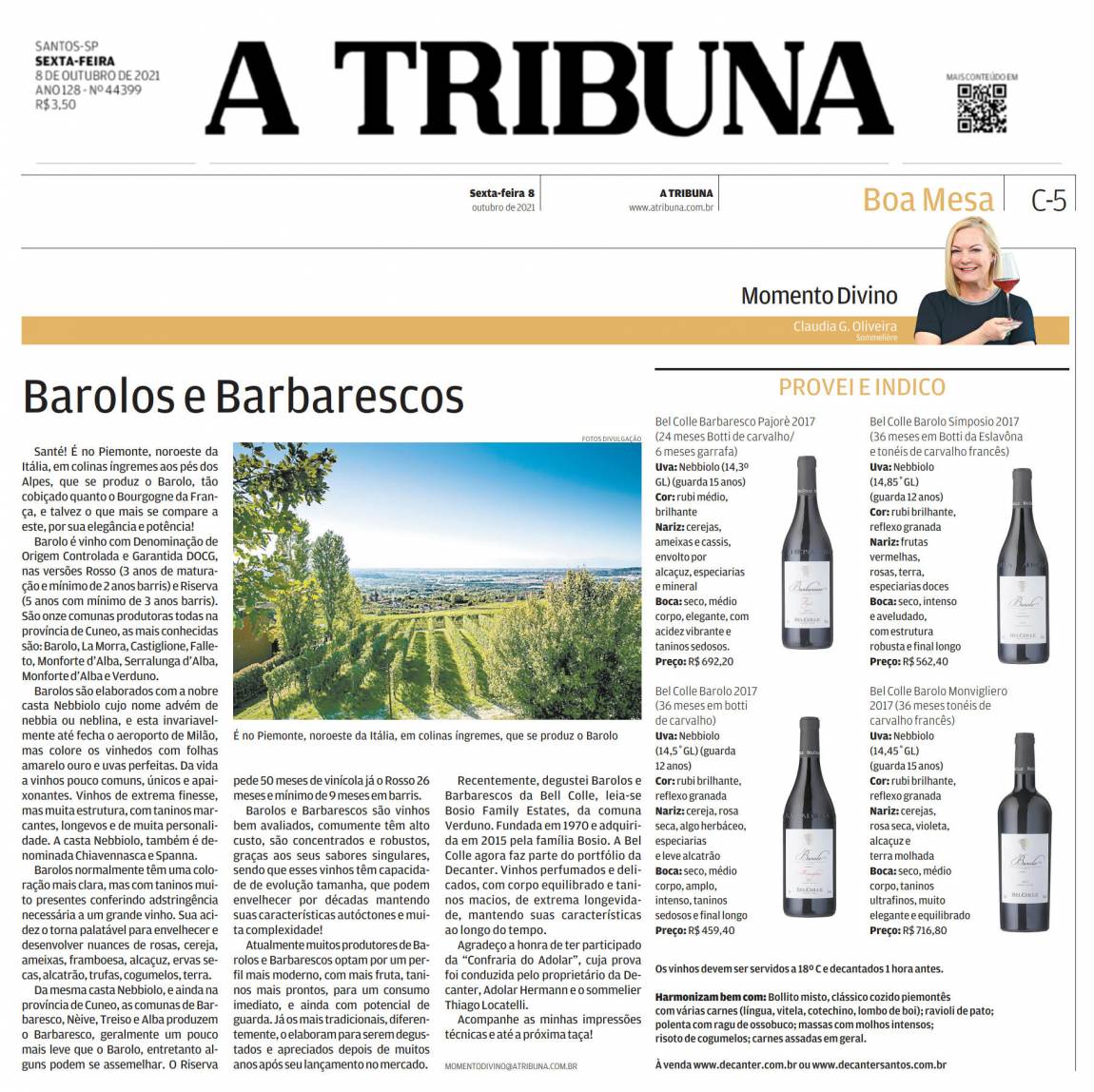 Recentemente degustei Barolos e Barbarescos da Bell Colle, leia-se Bosio Family Estates, da comuna Verduno. Fundada em 1970 e adquirida em 2015 pela família Bosio. A Bel Colle agora faz parte do portfólio da Decanter. Vinhos perfumados e delicados, com corpo equilibrado e taninos macios, de extrema longevidade, mantendo suas características ao longo do tempo.