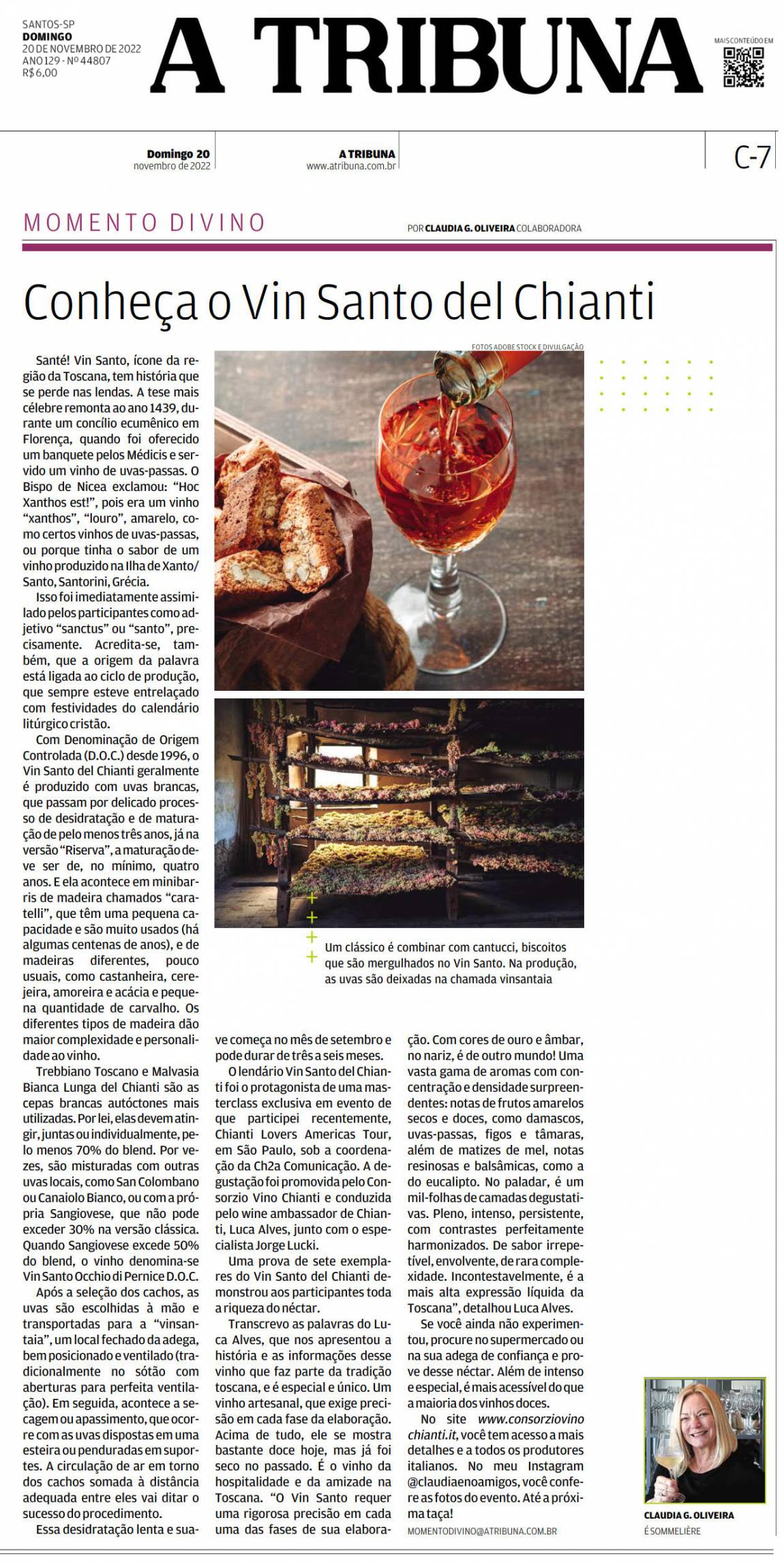 O lendário Vin Santo del Chianti, foi o protagonista de uma masterclass exclusiva no evento o qual participei recentemente, “Chianti Lovers Americas Tour” em São Paulo, sob a coordenação da Ch2a Comunicação. A degustação foi promovida pelo Consorzio Vino Chianti e conduzida pelo wine ambassador de Chianti, Luca Alves, junto com o especialista Jorge Lucki.